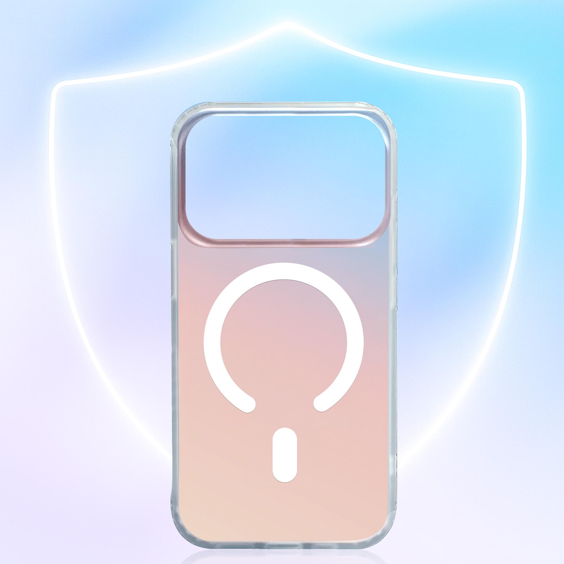 Holografické pouzdro s MagSafe, které mění barvy z každého úhlu. Zesílené rohy pohlcují nárazy, zvýšené okraje chrání displej i fotoaparát a certifikace Military Grade potvrzuje odolnost při 26 pádech bez poškození. Styl a ochrana bez kompromisů.