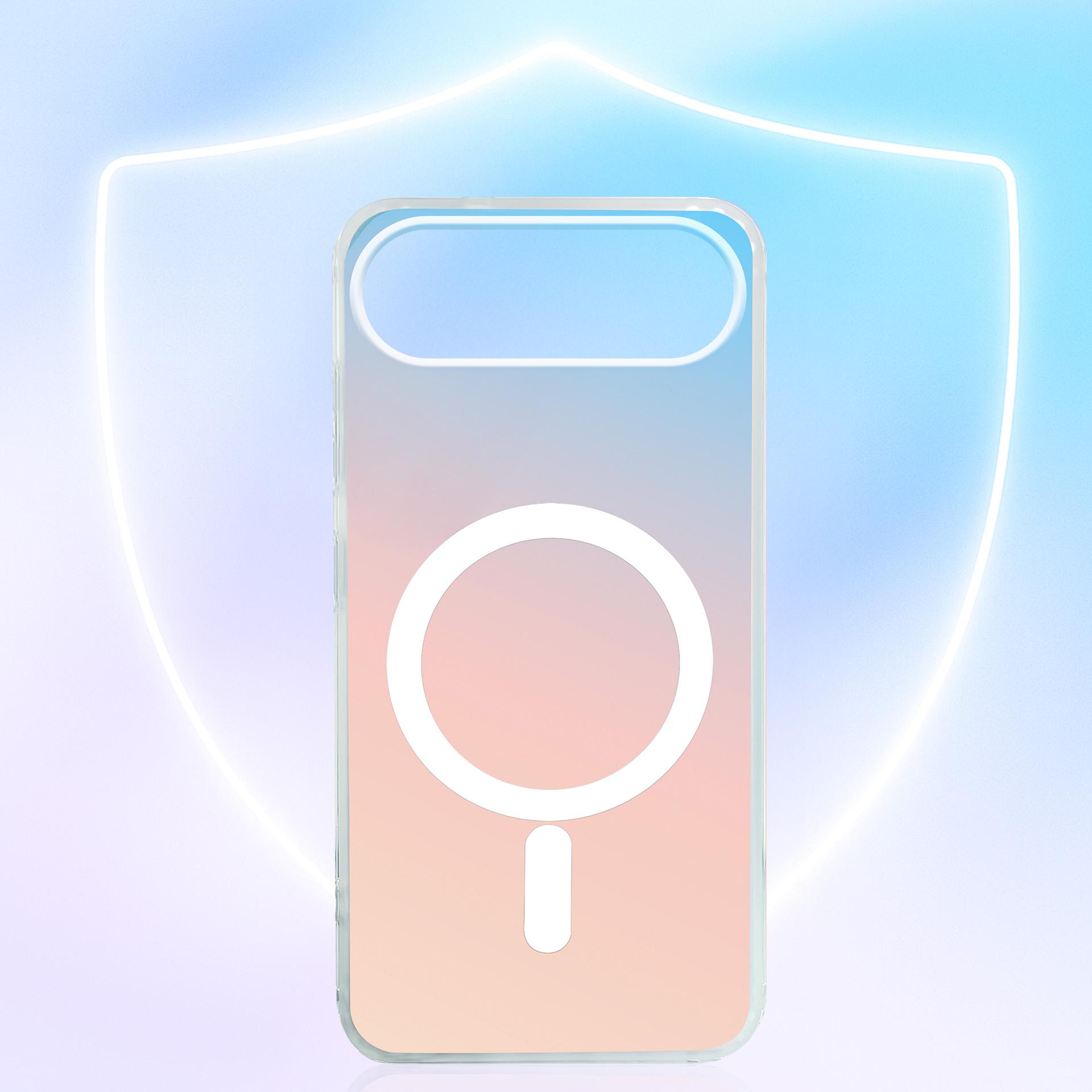 Holografické pouzdro s MagSafe, které mění barvy z každého úhlu. Zesílené rohy pohlcují nárazy, zvýšené okraje chrání displej i fotoaparát a certifikace Military Grade potvrzuje odolnost při 26 pádech bez poškození. Styl a ochrana bez kompromisů.
