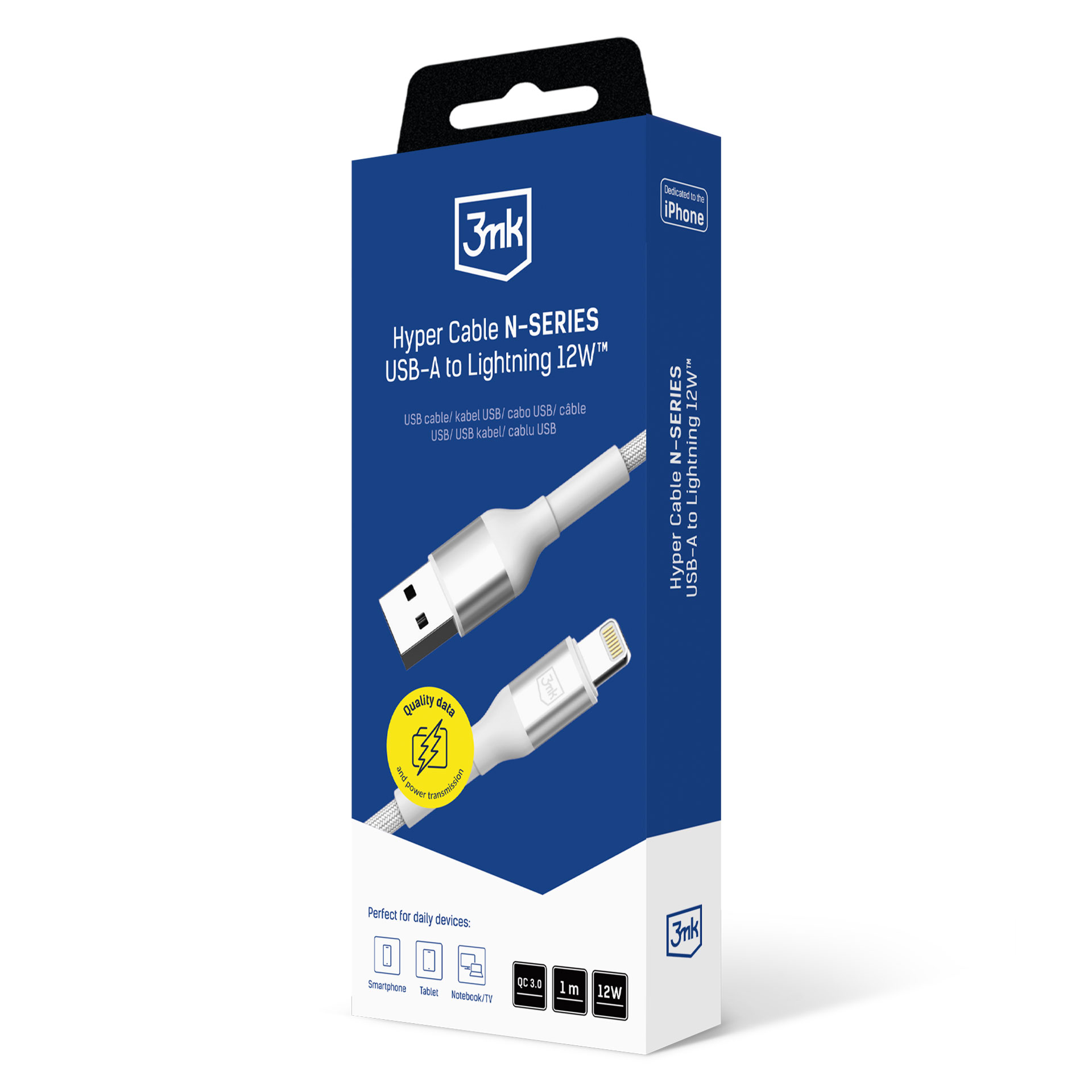 Kabel o délce 1 metr v elegantní bílé barvě byl navržen pro uživatele iPhonu, iPadu a dalších zařízení Apple s konektorem Lightning. Pevná zesílení v namáhaných místech, zejména u konektorů, chrání kabel před poškozením a napětím při ohýbání nebo častém připojování. Díky tomu zůstává kabel dlouhodobě odolný a spolehlivý a zajišťuje stabilní a bezpečné připojení v každé situaci.