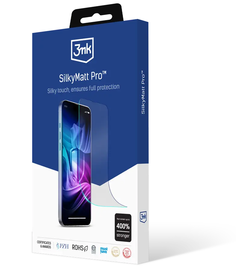 Používejte telefon bez omezení a bez stresu! Se SilkyMatt Pro se displej vašeho smartphonu stává odolnějším proti poškrábání a prasknutí až o... 400 %! Je to možné díky vícevrstvé struktuře, jejíž součástí je mimo jiné nárazuvzdorná podkladová vrstva s testy ověřenou spolehlivostí. Když vám telefon spadne na tvrdý povrch, skončí v písku nebo se ocitne v jedné kapse s klíči, SilkyMatt Pro minimalizuje riziko poškození displeje.