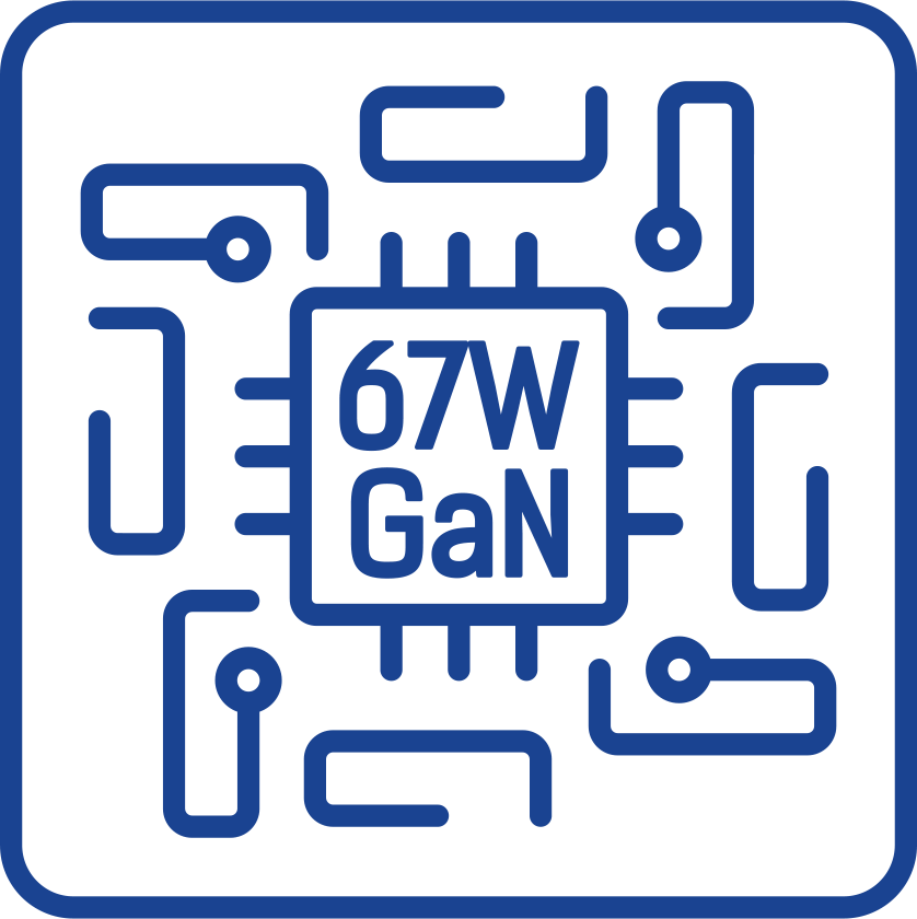 Inteligentní nabíječka s TFT displejem, který zobrazuje výkon, teplotu a dobu provozu v reálném čase. GaN 67 W = rychlé, bezpečné nabíjení bez přehřívání. Tři porty USB-C/USB-A nabíjejí laptop, telefon a příslušenství současně. Plný výkon, plná kontrola.